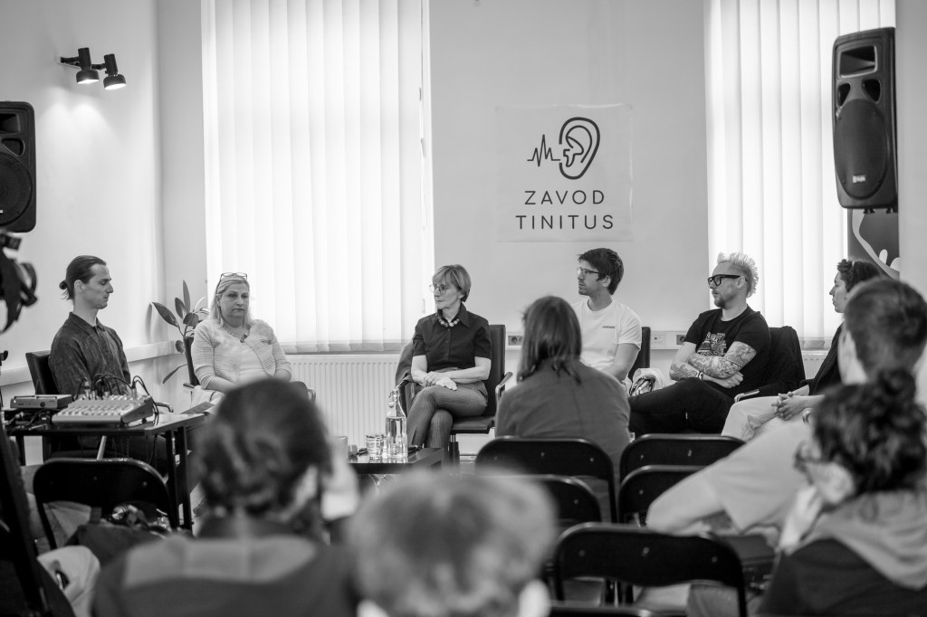 Sodelovali so: Boštjan Simon (Zavod TINITUS, glasbenik), prof. dr. Metoda Dodič-Fikfak (direktorica Kliničnega inštituta za medicino dela), dr. Branka Geczy (specialistka ORL), Teja Pahor Moder (Zveza gluhih in naglušnih), Jaša Bužinel (DJ, novinar in organizator) in Matej Gobec (oblikovalec zvoka).