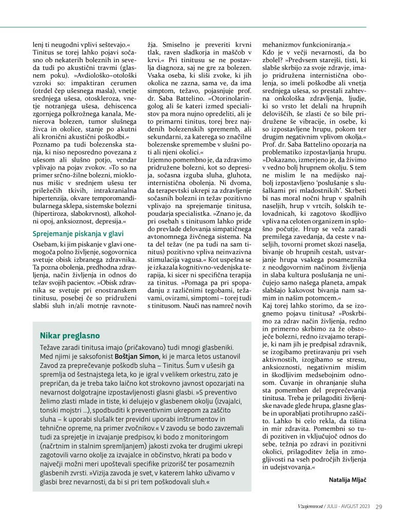 Da je tinitus vedno bolj pereča težava, kažejo tudi številni prispevki, ki v zadnjem času nastajajo na to temo.