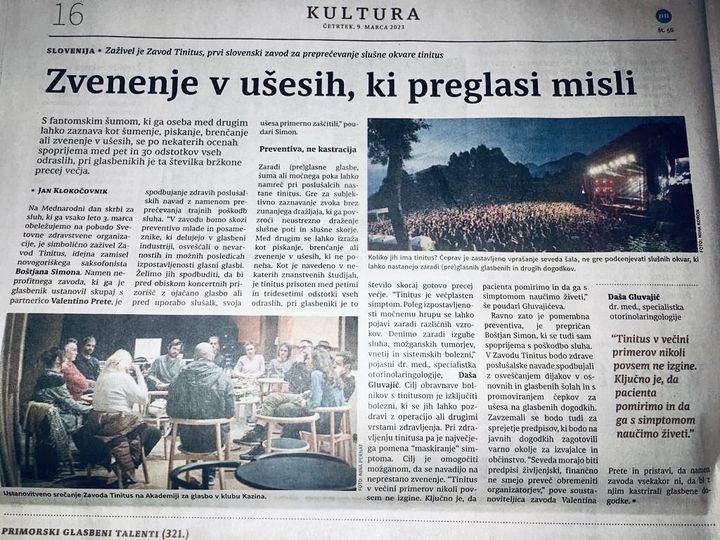 Novinarka Tina Lešničar je v Sobotni prilogi objavila odličen članek, v katerem je predstavila problematiko hrupnega okolja, osebno izkušnjo glasbenika Bojana Krhlanka, strokovni pogled dr. Branke…